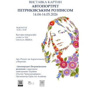 Запрошуємо вас на відкриття виставки «Автопортрет петриківським розписом» — подія, де мистецтво стає відображенням душі. Коли? — 14 квітня о 18:00 Де? — Rijeka, Razvojno-integracijski centar sv. Vid (Grivica 6) виставка триватиме з 14.04 по 14.05 04.2026 робочий час з 11:00 до 17:00 Виставка портретів виконаних петриківським розписом народною майстринею України Ольгою Черьомушкіною результат арт-ретриту […]
